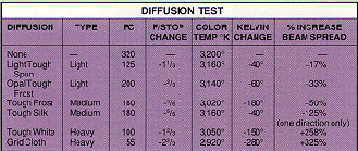 Light Tough Spun and Opal Tough Frost are light diffusers. Attached to the lamp, they are excellent for cleaning up uneven beam patterns. Light diffusers can take the edge off a light without affecting its directional crispness. Opal Frost has been my favorite diffuser for years.
