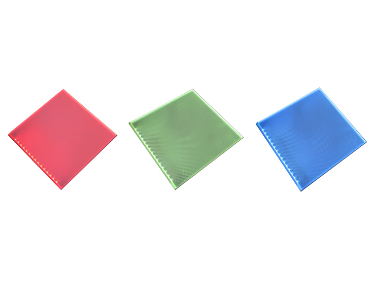 X-Effects LED プロジェクターの自然光の一部を透過させて、ニュアンスに富んだリアリスティックなオーロラ/北極光効果を実現できるように波状エッチングが施された特殊緑色ダイクロイックガラスフィルター。